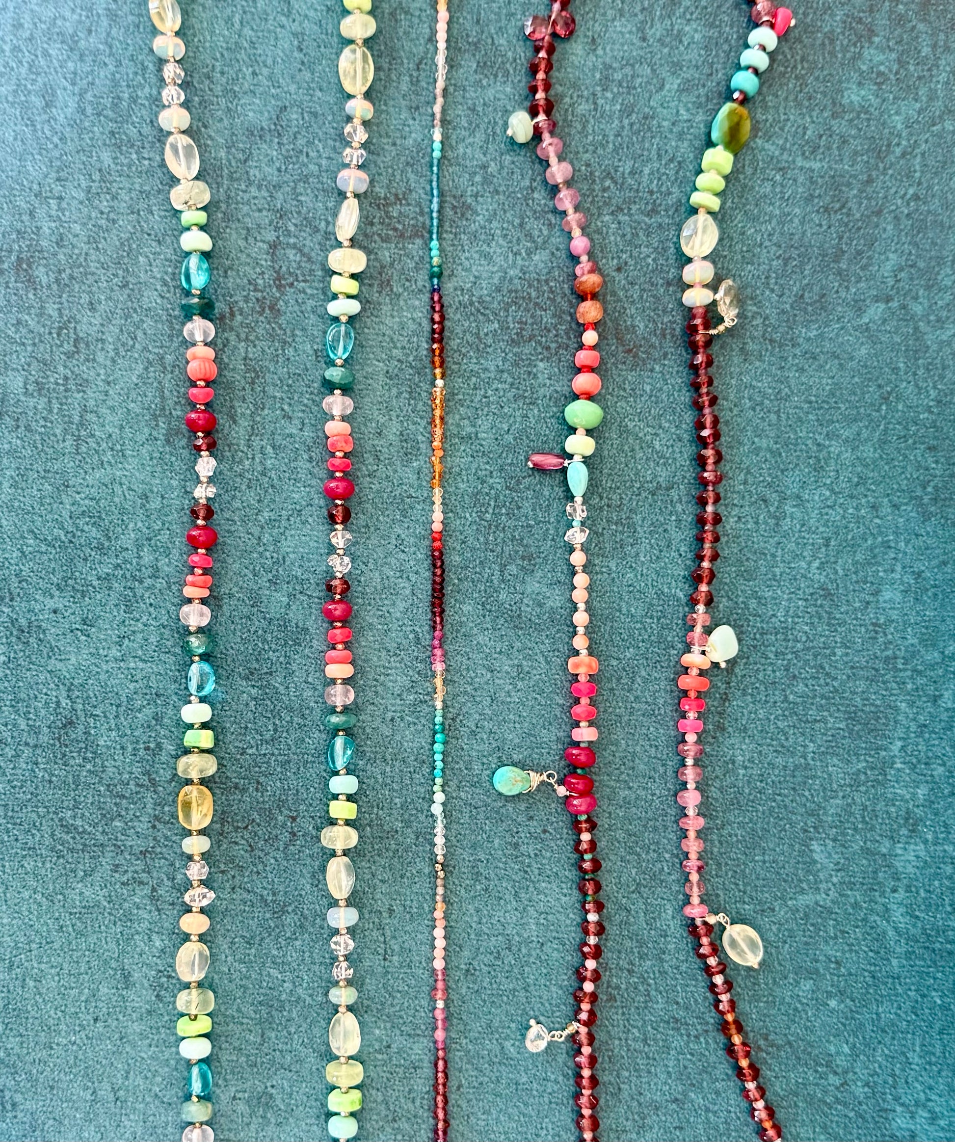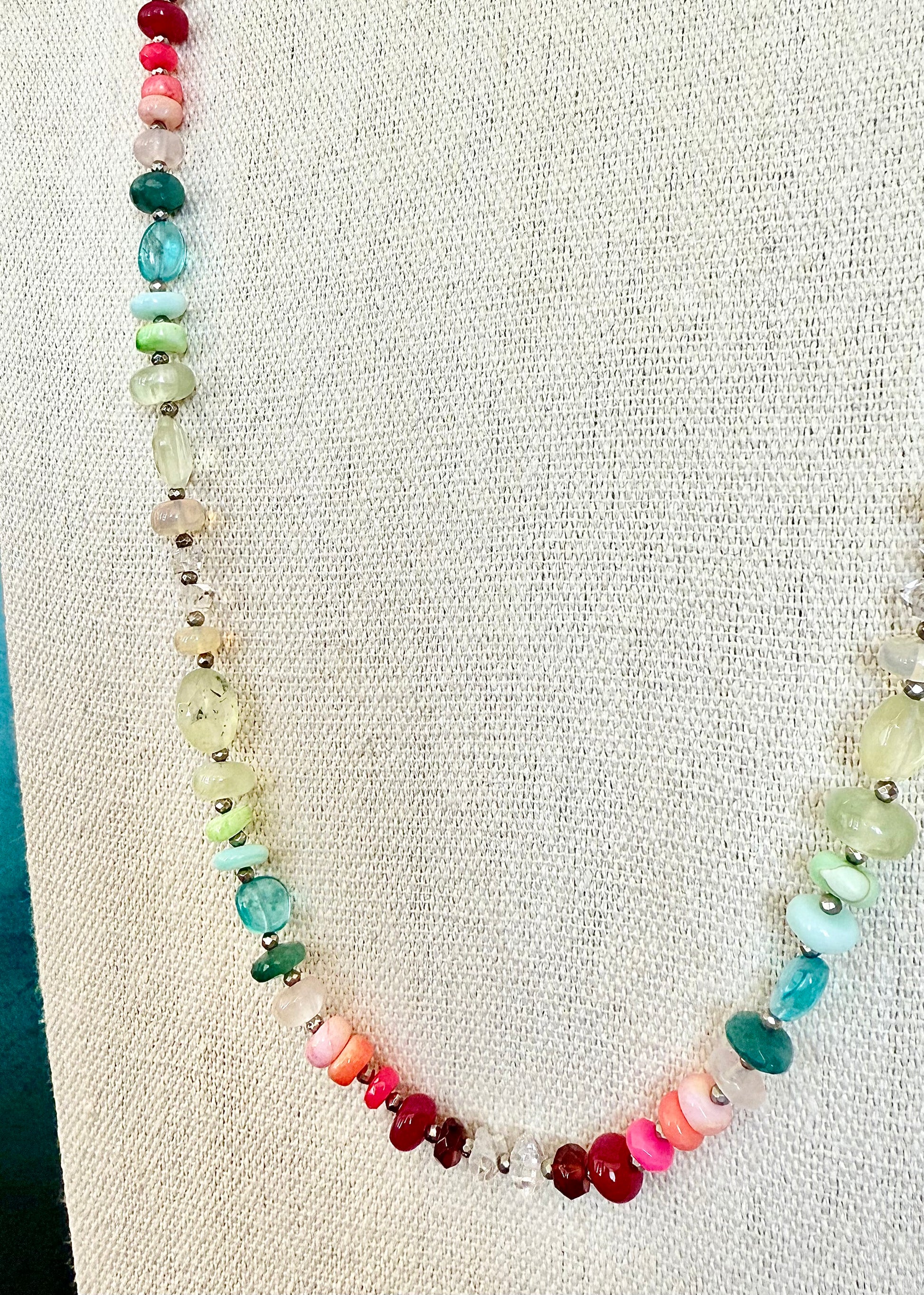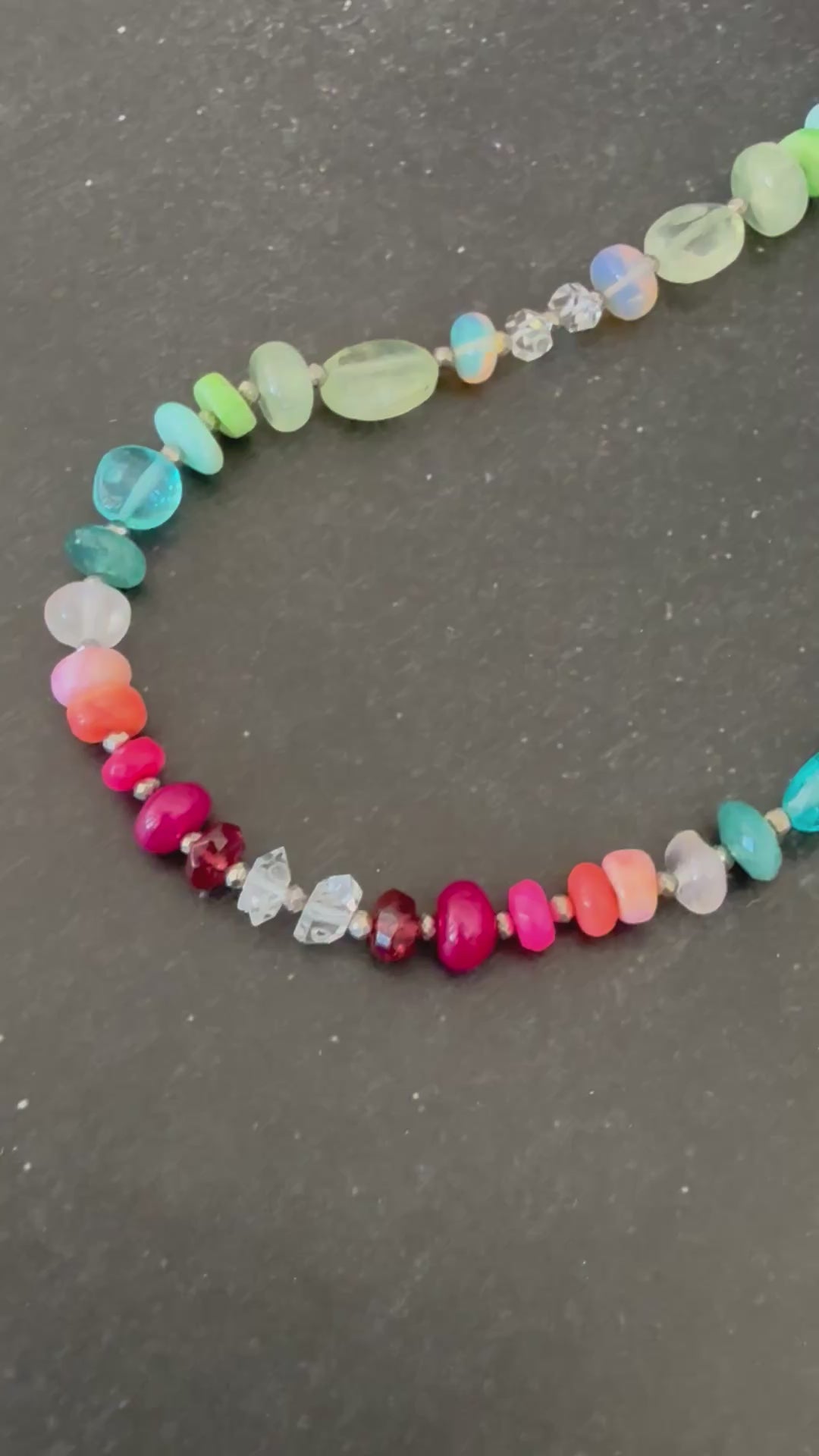 Gemstones: Apatite, larimar, opal, chrysoprase, rose quartz, pink opal, prehnite, coral, grandiderite