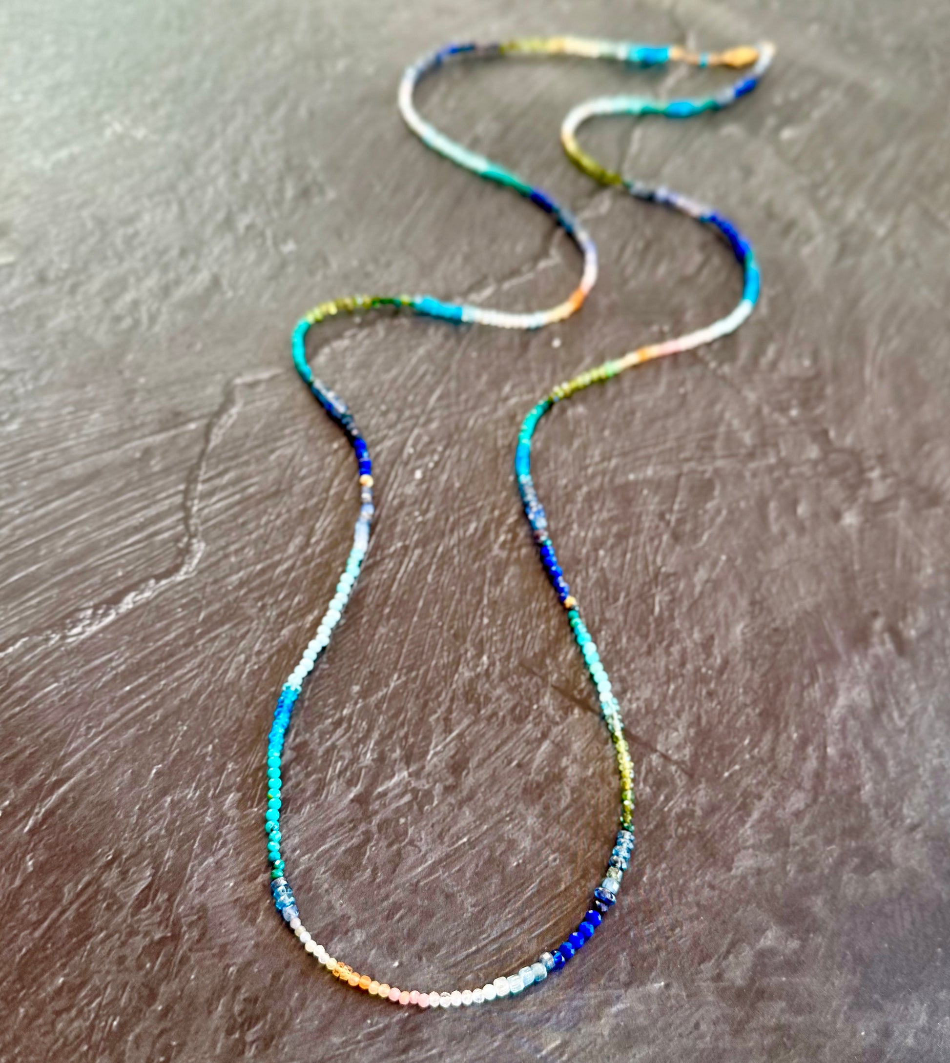 Gemstones: Apatite, amazonite, chrysoprase, lapis, jade, aquamarine, kyanite, blue agate, prehnite, orange sapphire
